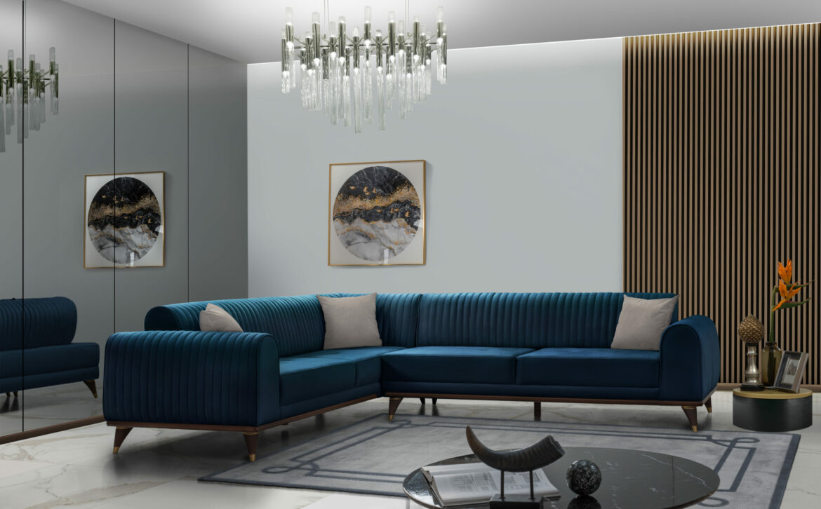 Permasa: 298 cm x 245 cm, gjerësi 95 cm Ngjyra: blu Fal mekanizmave shtytes te shpines. Kendi shnderrohet edhe si vend per fjetje. Vetem nga njera ane (nga ana 298 cm) Ka strukture dru ahu multistrat.